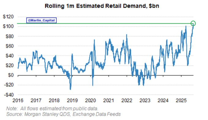 Retails is also just buying. Call option volumes is at new highs, retail call demand is surging. There is no end.