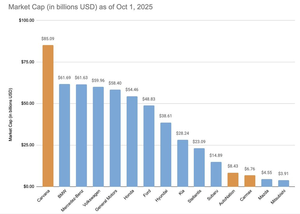 Then there are dozens of companies like Doordash or Carvana that seem to ignore every reasonable valuation metric to their business model and are around 50-150b in market cap. (Given that the total used car market profits are 9b - including small dealers).